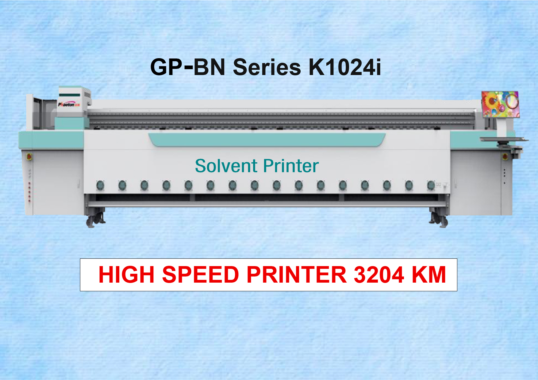 Solvent printers are suitable for a wide range of printing media, can meet the requirements of high-speed printing. Vivid colors, realistic effects, wide color gamut, excellent color expression, waterproof, scratch-resistant, and long-lasting final prints.